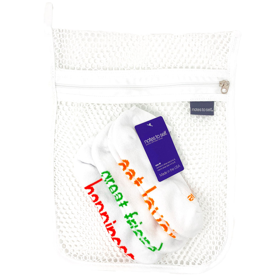 What a great way to organize and wash and dry your notes to self® positive affirmation socks.